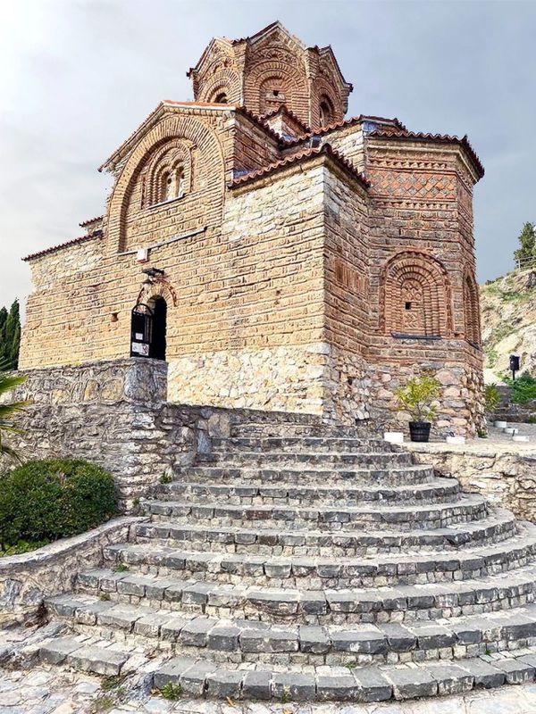The magnificent structure built on the rocks in Ohrid is also an orthodox church located at the end of the cliff overlooking the view of Lake Ohrid. The church, named after St John, one of the 12 apostles of Jesus Christ and the author of the Gospel of John, is thought to have been built in 1280. The architect of the church, built in the shape of a cross with a rectangular base, is unknown. It is thought that the architect of the church, which has a single dome and an unusual roof cornice, was influenced by Armenian churches.